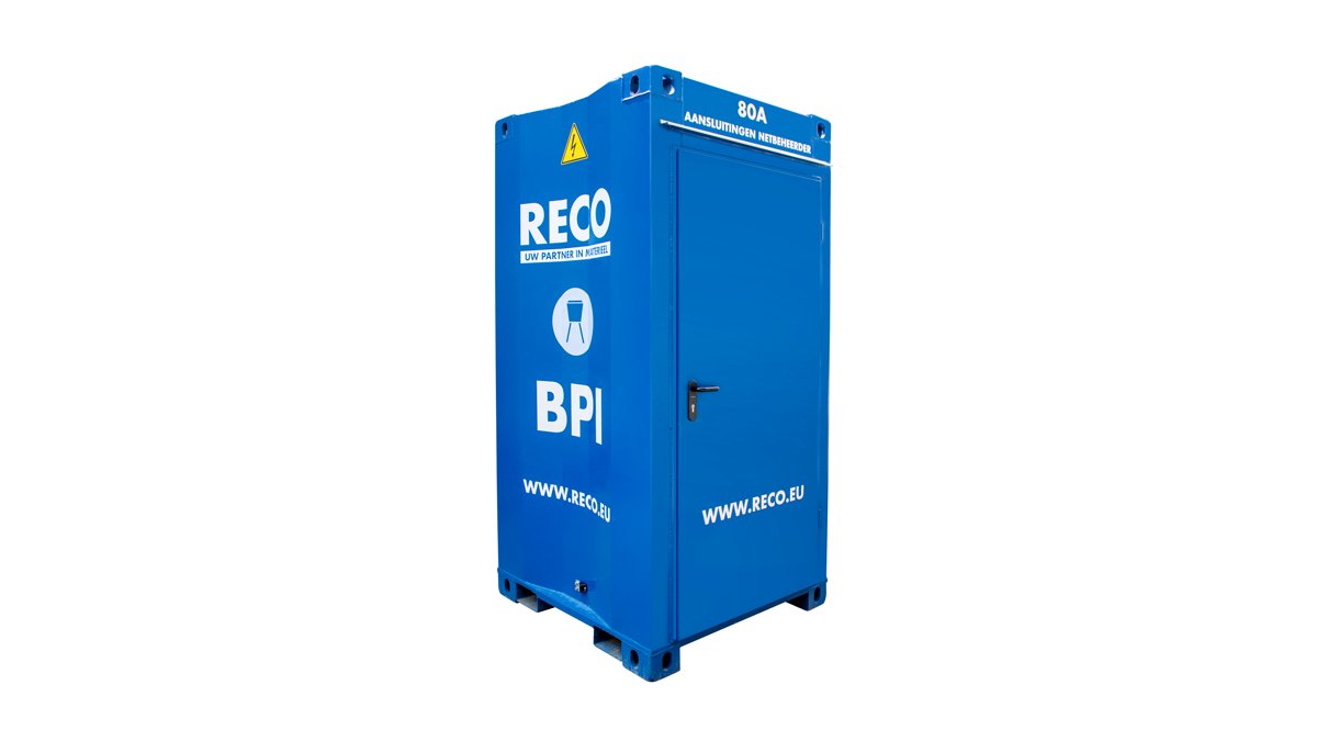In de container is ruimte voor de installatie van een meetinrichting van het nutsbedrijf. Deze ruimte heeft een aparte deur, waardoor deze ruimte tijdens uw project netjes afgesloten kan blijven. Zo voldoet uw stroomvoorziening altijd aan de vereisten voor meting en registratie van energieverbruik.