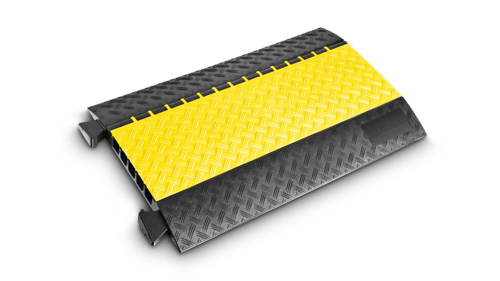 Wanneer u kabels over een voetpad of doorgang voor verkeer wilt leggen, is het slim om hier kabelbruggen in te zetten. Hiermee voorkomt u niet alleen dat iemand over de kabels struikelt, maar ook slijtage en in het ergste geval stroomuitval. Met een kleine hoogte van ca. 5 cm en een draagvermogen van 5 ton per 20 cm² kunnen auto’s en scooters makkelijk de kabelbrug oversteken. Het rubber is daarbij bestand tegen olie, benzine en de meeste zuren, en kan gebruikt worden bij temperaturen van -30° tot 60° C. De kabelgoten kunnen dus ook makkelijk een middagje in de zon liggen.
