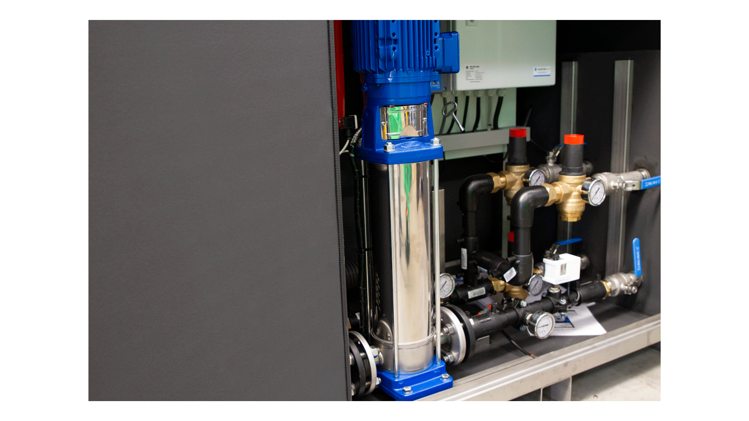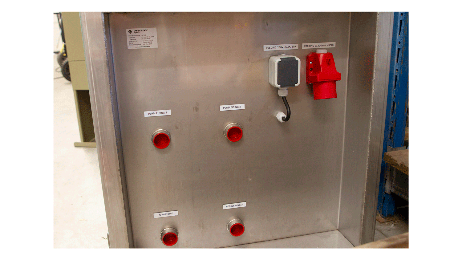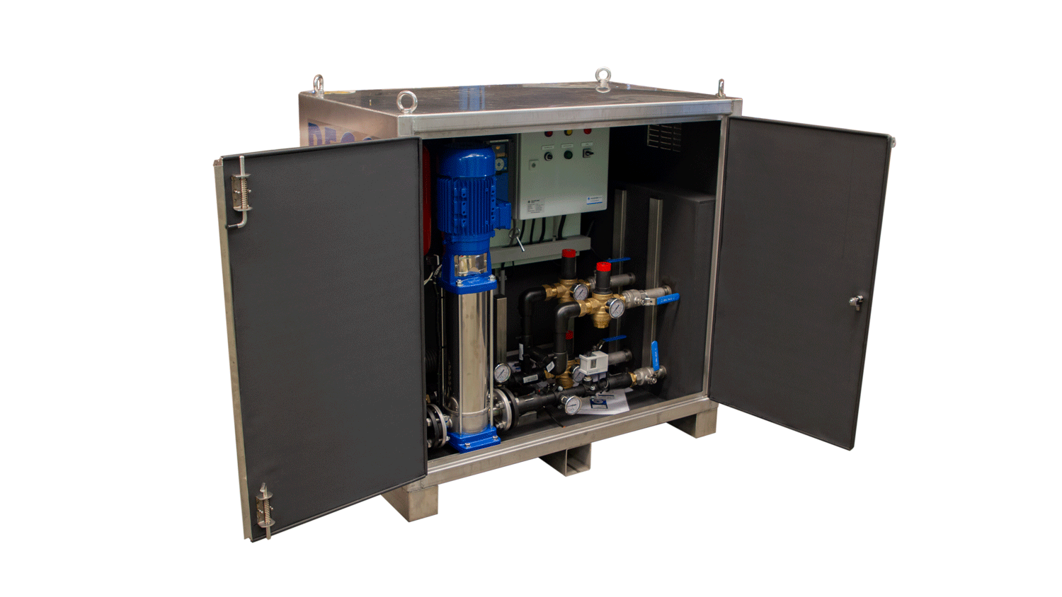 Deze hydrofoorinstallatie heeft een waterpomp met een opvoerhoogte van 110m. Dat maakt deze hydrofoorpomp de standaard voor grotere hoogbouwprojecten. De waterpomp is gemonteerd in een rvs-behuizing en voorzien van vorstbeveiliging. De waterpomp wordt gevoed middels een 5-polige CEE-stekker (400V).