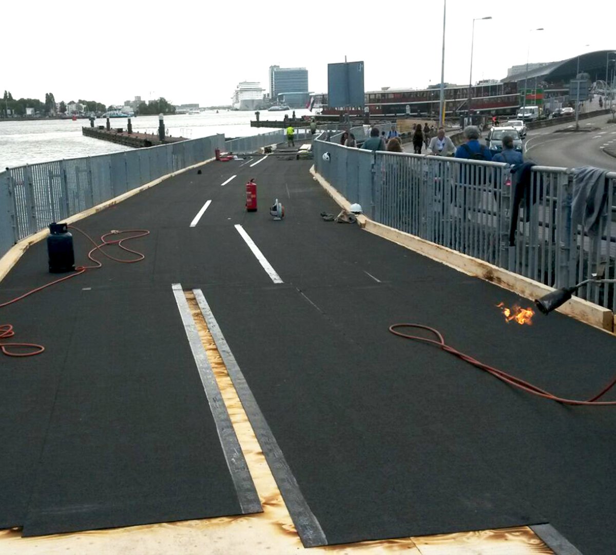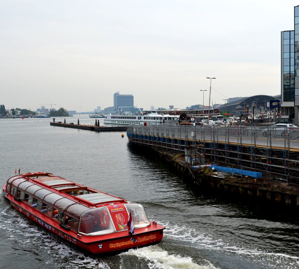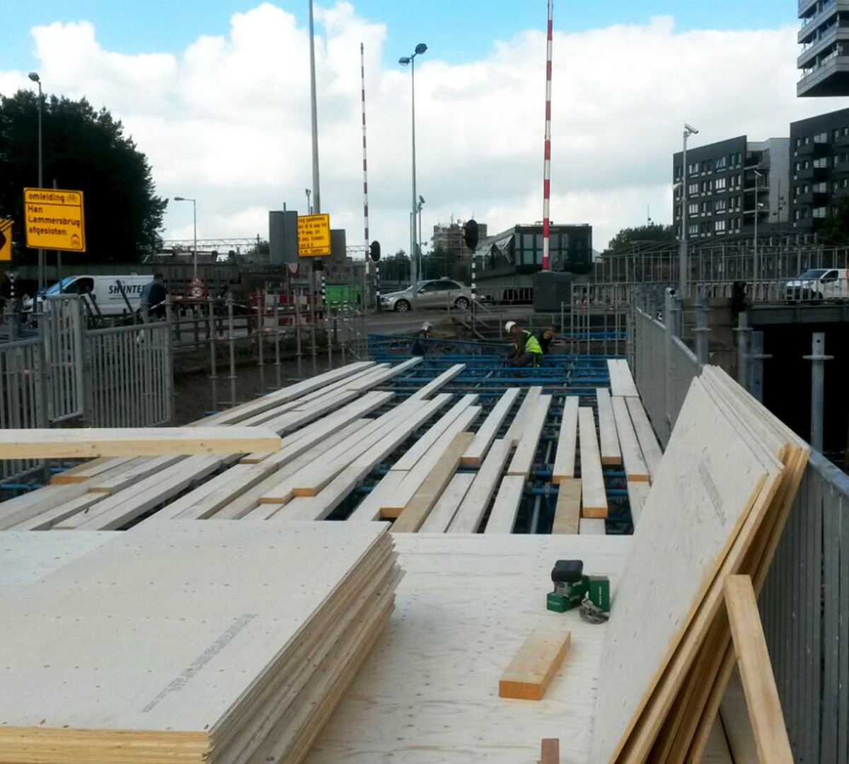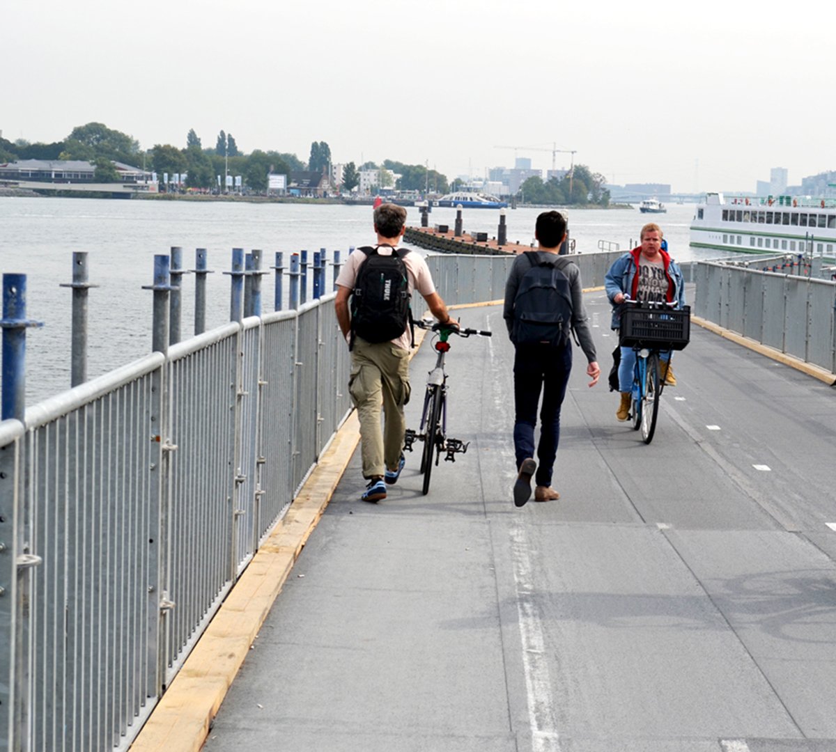 In de eerste fase van de reconstructie van de Ruijterkade wordt er door de kabel- en leidingbeheerders werkzaamheden verricht in het zuidelijke deel van het projectgebied. Om ruimte te creëren en alle verkeersstromen optimaal te blijven faciliteren wordt hier een tijdelijke fiets- en voetgangersroute van 134 meter gerealiseerd, waarvan de eerste 45 meter gedragen wordt door pontons in het water. Het resterende gedeelte is gemonteerd op 3,00 meter overkragende tralieligger vanaf de kademuur. De constructie heeft een breedte van 5,00 meter en is voorzien van antislip materiaal zodat er ook tijdens regenval voldoende grip is.