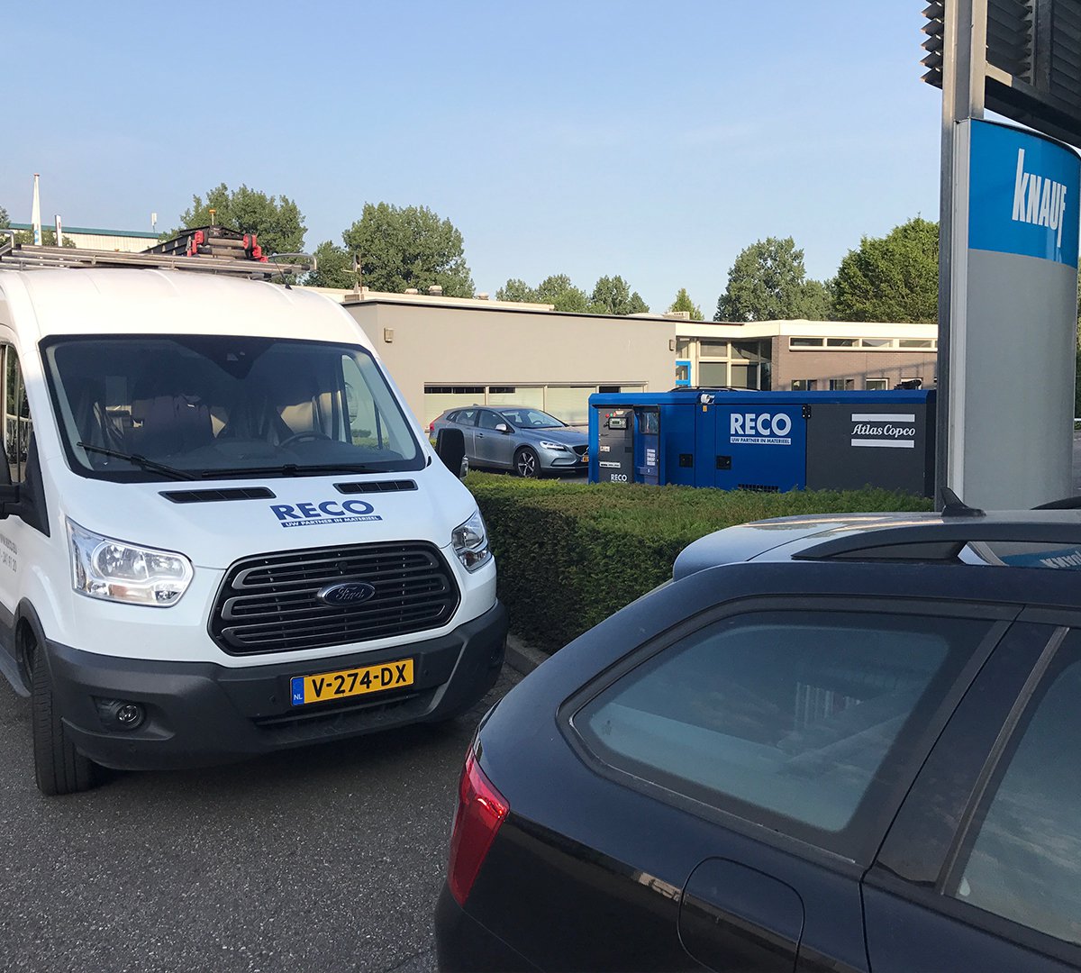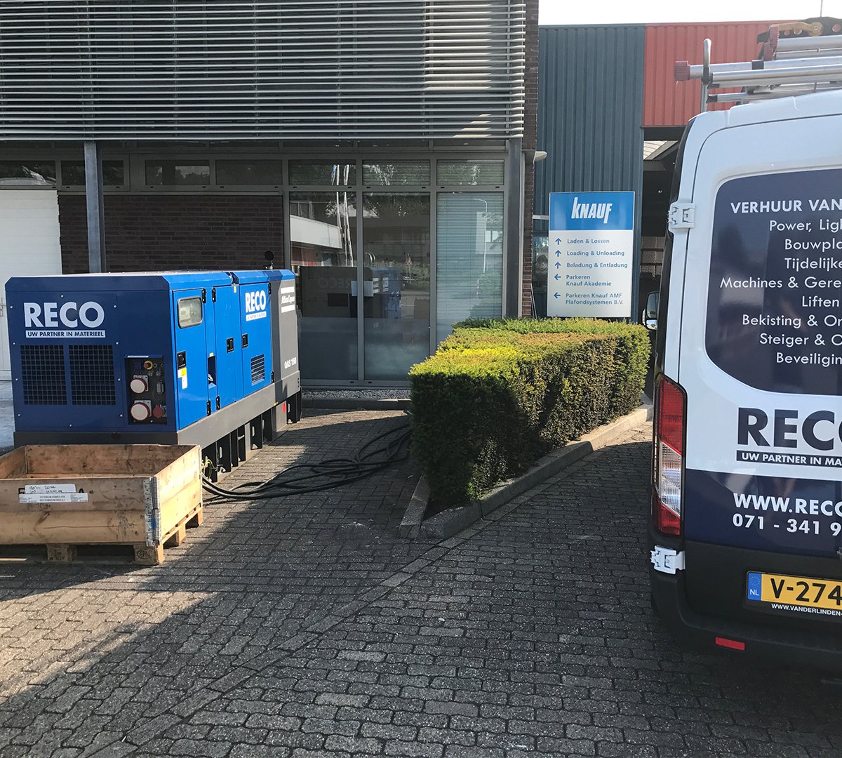 Knauf, een bedrijf dat een volledig assortiment biedt in innovatieve afbouwsystemen en -materialen voor nieuwbouw, renovatie en restauratie, kwam bij RECO met de vraag om een tijdelijke stroom overnamen te verzorgen voor de gehele elektrische installatie. We plaatsten een aggregaat om deze stroomvoorziening te verzorgen.