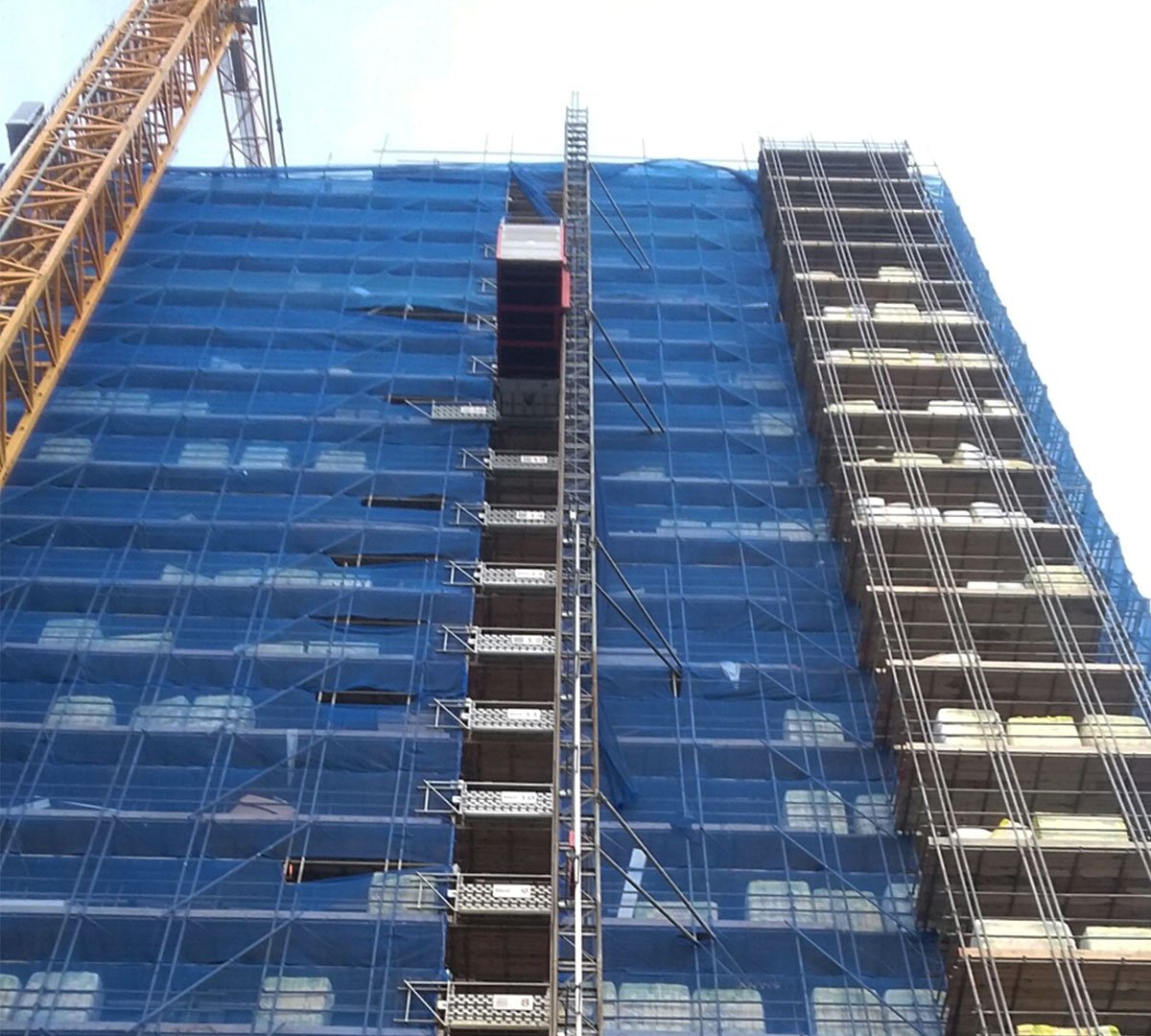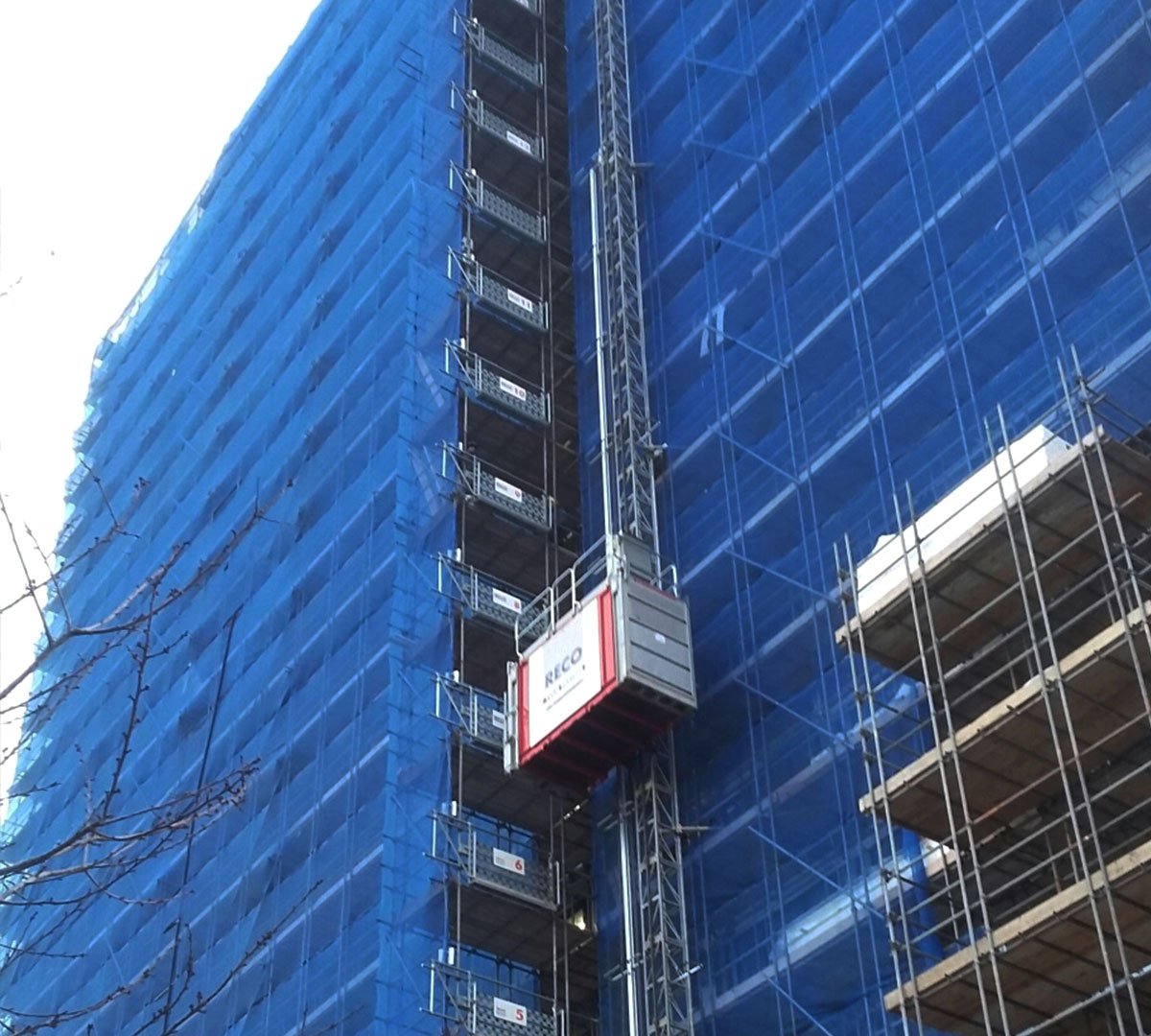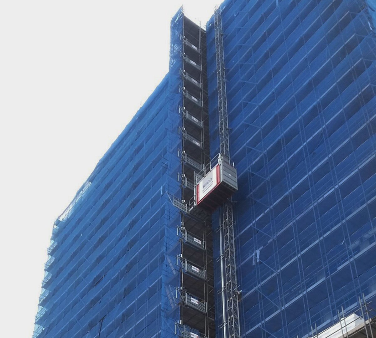 Er wordt hard gewerkt aan de nieuwbouwtoren aan de Stieltjesweg in Delft, die maar liefst 23 verdiepingen telt. Voor dit project zijn twee personen- en goederenliften ingezet die zorgen voor het verticale transport naar gewenste hoogte; de Scanclimber 2032-65 en de Scanclimber 1432-48. Anders aan dit project is dat de liften niet zijn verankerd volgens het standaard patroon. Maar niet alleen onze liften mogen een bijdrage leveren aan dit bijzondere project. Ook is er materieel geleverd voor de bouwplaatsinrichting. Zo staat er een luchtverhitter buiten het gebouw voorzien van luchttransportslangen en verdeelstukken, die is aangesloten op de ventilatiekanalen op de tweede verdieping.