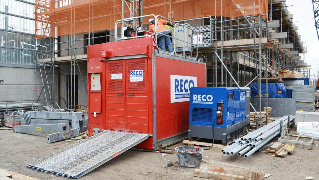 Omdat de nutsaansluiting nog niet klaar was, hebben we een aggregaat 60 kVA meegenomen voor de montage van de Scanclimber SC1432. Nadat de lift opgebouwd was hebben we het aggregaat laten staan als noodstroomvoorziening. Dit bespaart Ouwehand Bouw al snel een week wachttijd voordat ze de lift kunnen gebruiken.