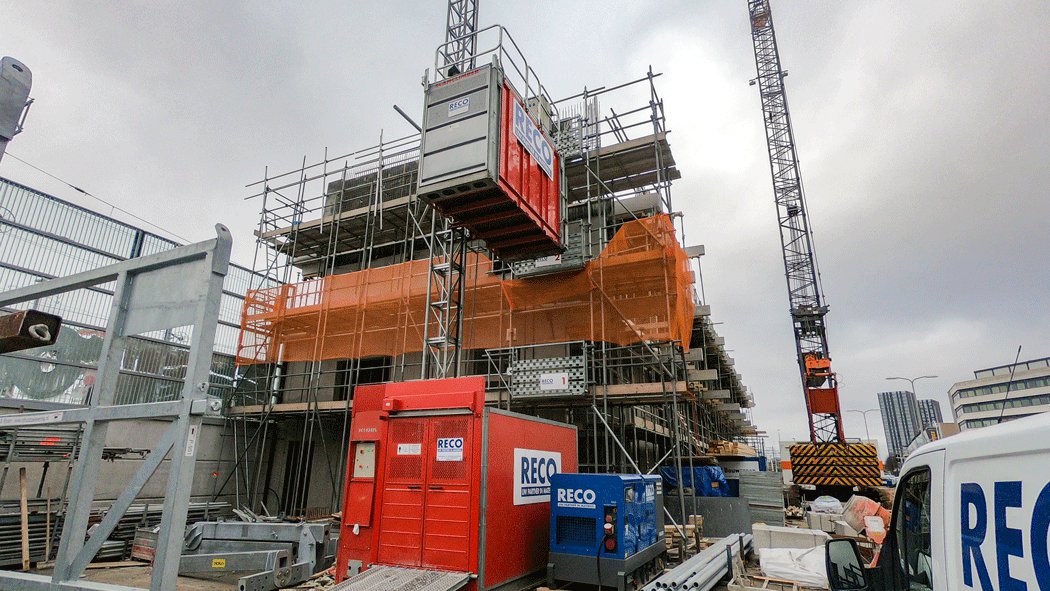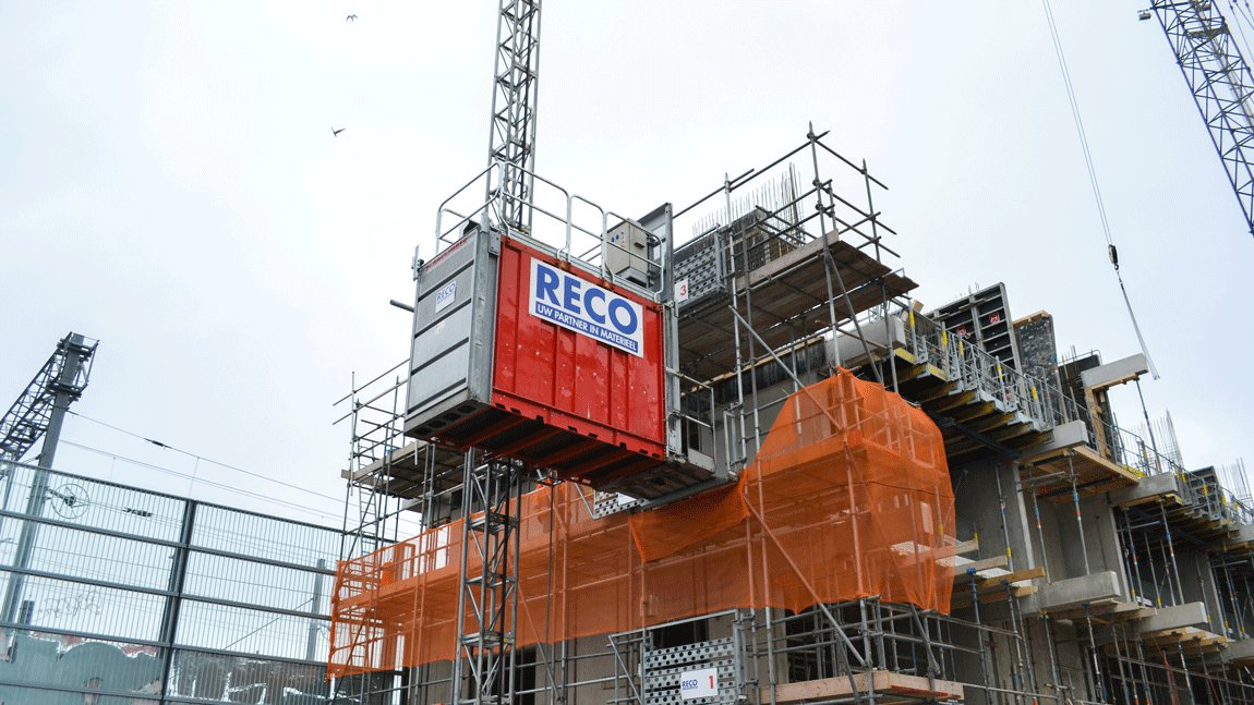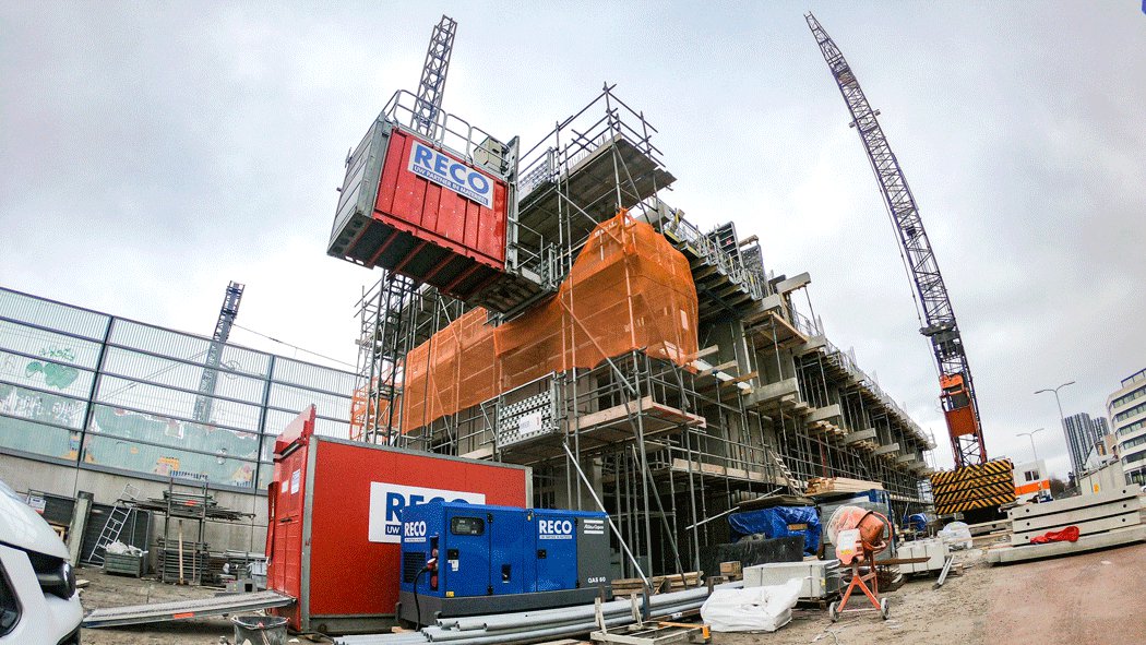 Voor de bouw van het pand heeft Ouwehand een kraan en onze SC1432 personen-goederenlift gehuurd. Omdat de flat 13 etages hoog wordt en er veel goederen naar tussengelegen etages vervoerd moet worden, is de Scanclimber SC1432 een uitstekende bouwlift voor dit project. De Scanclimber bouwlift is nu 3 etages hoog, maar wordt naarmate de bouw vordert, opgehoogd tot 13 etages. In totaal blijft de bouwlift 60 weken op locatie.