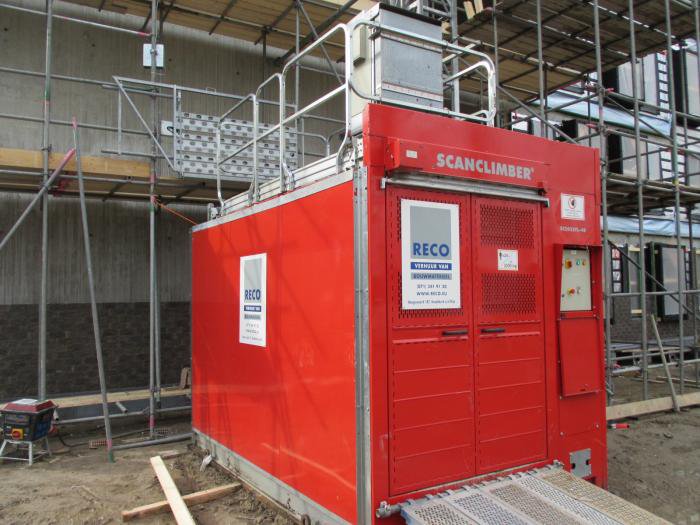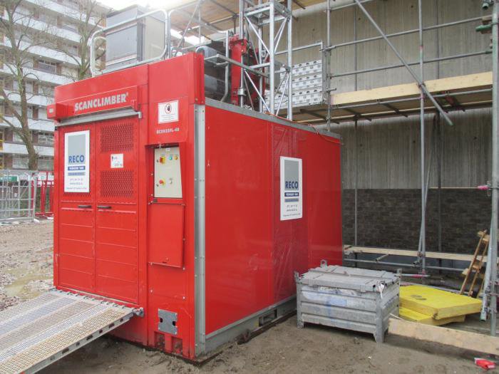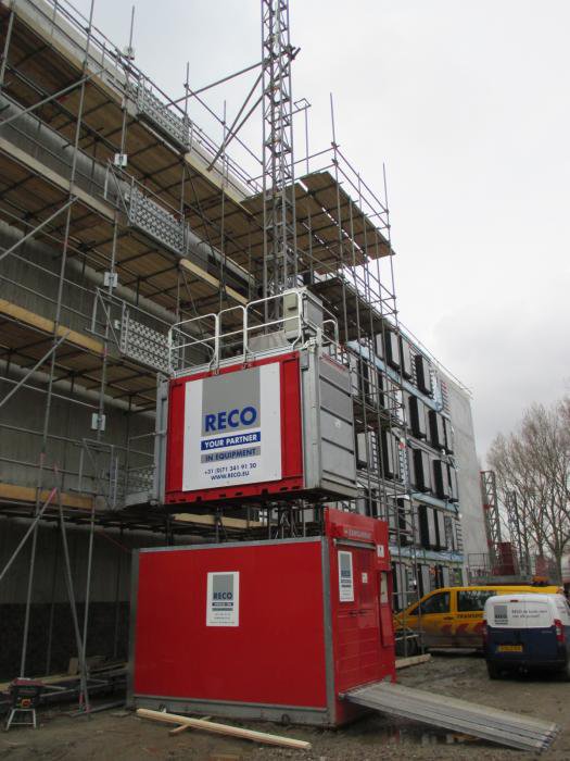 In opdracht van Smit’s bouwbedrijf plaatste RECO drie Scanclimber SC2032 personen-goederenliften, met elk een capaciteit van 2000 kilogram. In dit geval verzorgde RECO de volledige installatie, met inbegrip van de stroomvoorziening en de inzet van een autokraan. De liften worden ingezet ten behoeve van het bevoorraden van de afbouwwerkzaamheden.