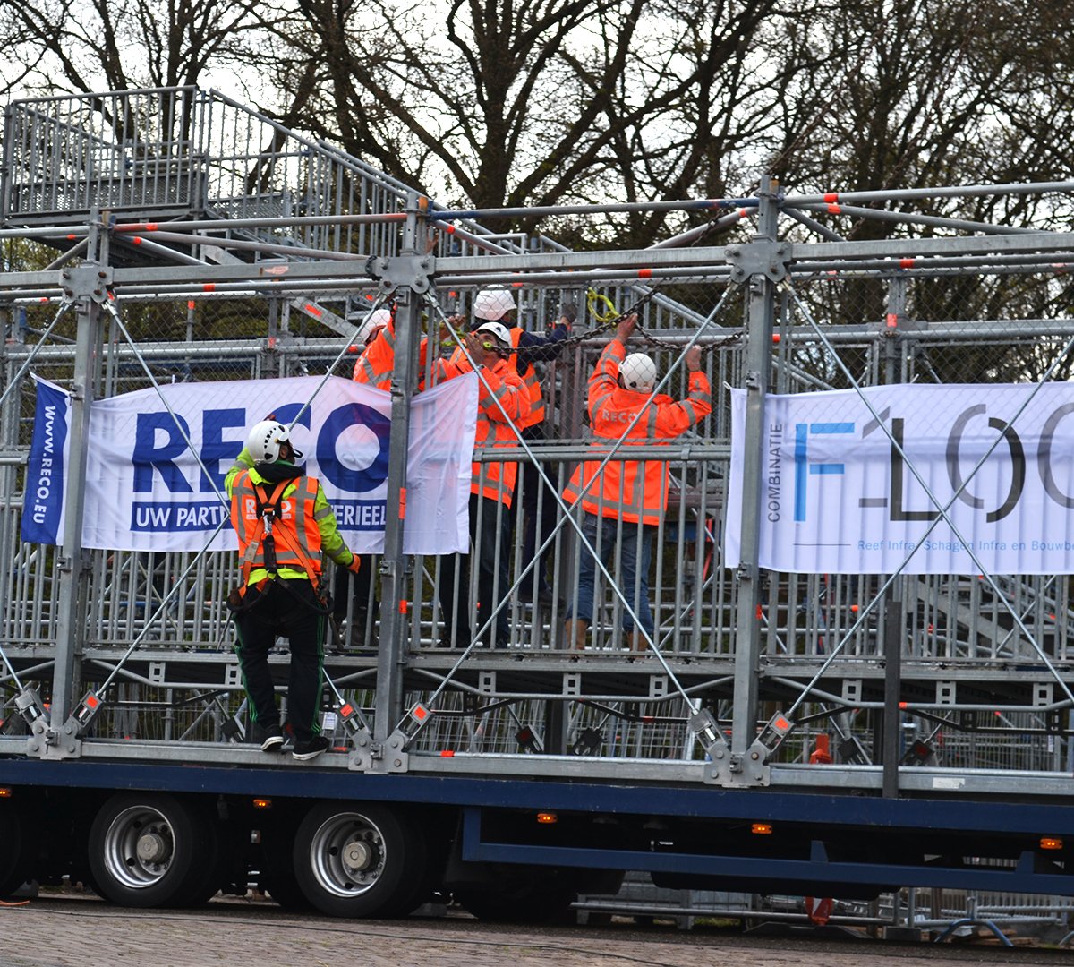 Voor aanvang van onze werkzaamheden heeft opdrachtgever FLOOW de nodige grondaanpassingen verzorgd en stelconplaten geplaatst, waardoor de tijdelijke brug geplaatst kon worden op een daadkrachtige ondergrond.