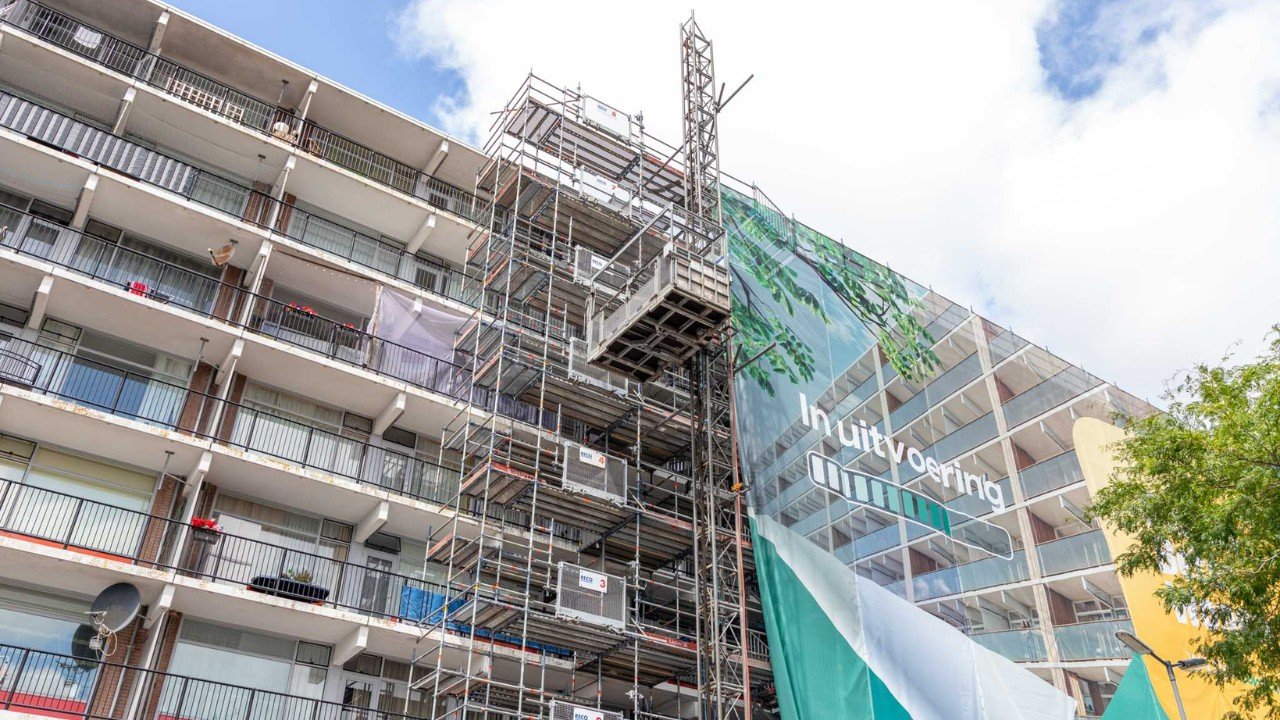 Hoe renoveer je een flat van zeven verdiepingen, in bewoonde staat, zonder overlast? Dat is de uitdaging waar woningcorporatie Woonwaard en uitvoerder Lenferink voor stonden bij de grootschalige renovatie van flat De Vooruitgang in Alkmaar. Deze karakteristieke flat ligt aan de Vondelstraat, nabij het centrum en direct naast het Victoriepark. Voor dit project schakelden zij RECO in als partner in materieel én dienstverlening.