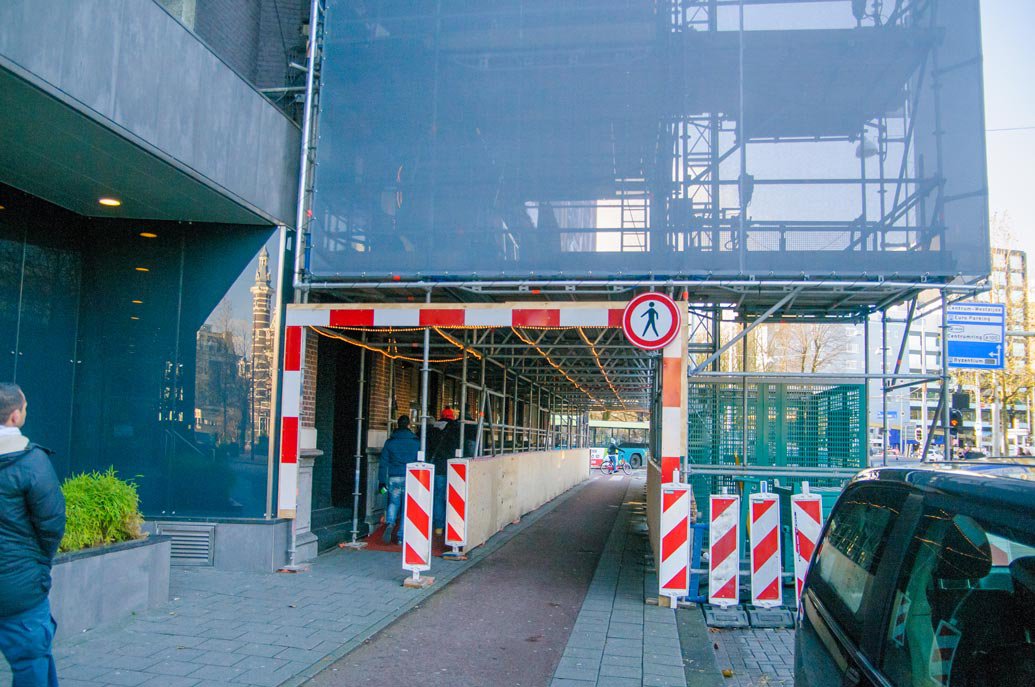 Steigerbouw op drukke locatie in binnenstad van Amsterdam