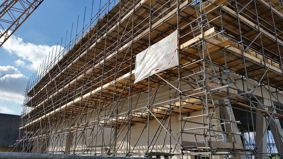 Steigers voor luxe houten woonwerkwoningen in Amsterdam