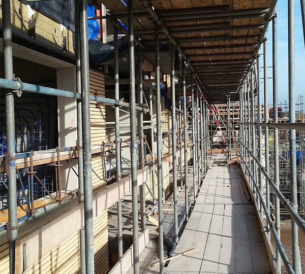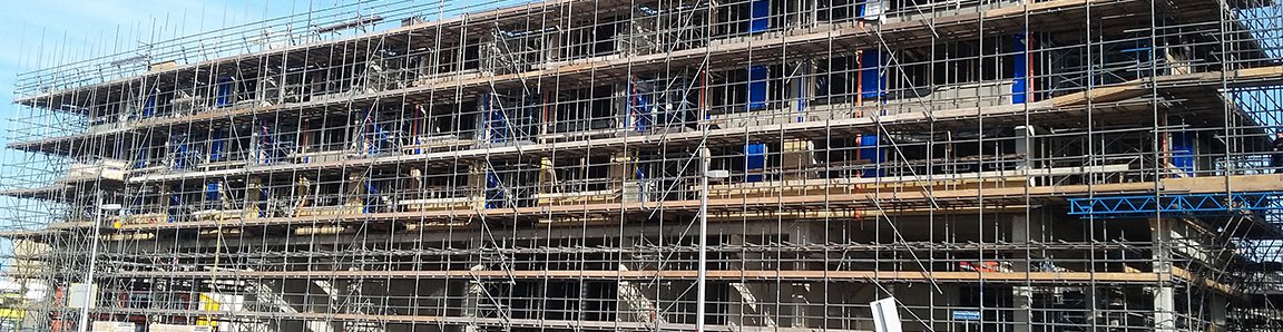 Bouwblok C1 (de Phoenix en Richmond) bestaat uit twee delen. Allebei de delen bestaan uit één laag winkels met daarboven vijf etages met appartementen. De gebouwen hebben de vorm van een U en komen tegenover elkaar te staan, waardoor er een soort binnenplaats wordt gecreëerd. Voor dit deel van het project hebben we 16.000m² tube lock steigers ingezet, welke voor een periode van circa 42 weken blijven staan. De vloerbreedte is 1,30 meter met aan de binnenzijde een vloer van ca. 0,80 meter. Op elke etage van het pand bevinden zich etagevloeren. De steigers zijn door onze experts gemonteerd en worden na afloop ook weer gedemonteerd en afgevoerd.
