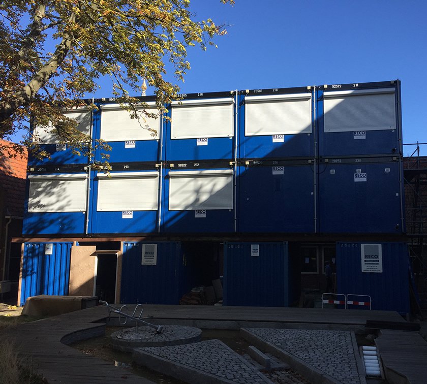 De tijdelijke accommodatie is opgebouwd uit 9 schakelunits van 3x6 meter. De units zijn door middel van een 200 tons kraan op de binnenplaats van het museum geplaatst. Daarnaast zijn er containers gebruikt, waarop de units zijn geplaatst. Hierdoor ligt de ingang hoger en moest er een allround trappentoren van steigers worden gebouwd om toegang te krijgen tot de units. Omdat de straten op locatie redelijk smal zijn, is er een speciaal kraanplan gemaakt. De tijdelijke accommodatie zal blijven staan voor een duur van vijfenveertig weken. Daarna zal het materieel weer gedemonteerd en afgevoerd worden.