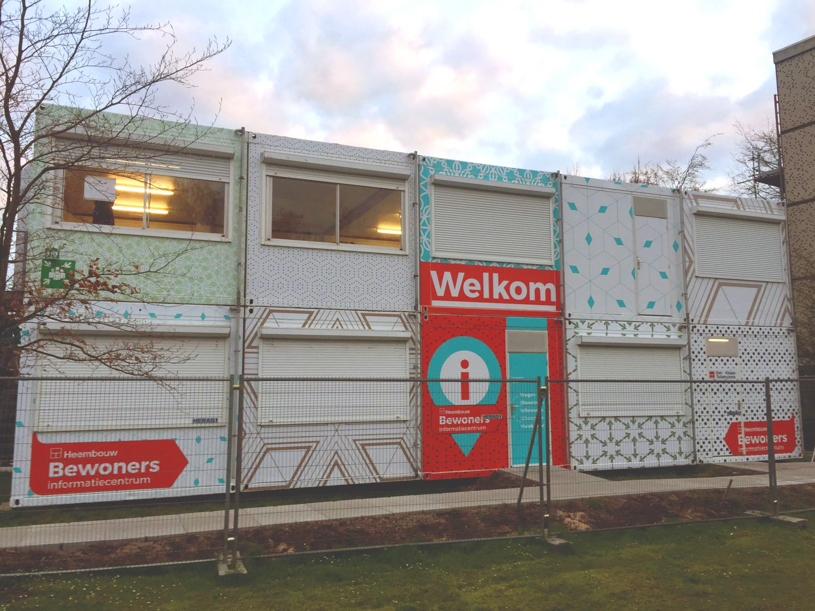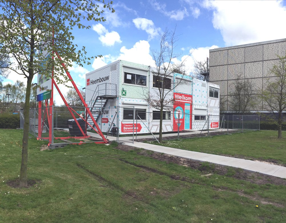 Tijdens de werkzaamheden met een doorlooptijd van 3 weken blijven de (vaak oudere) bewoners in hun woningen. Om hen na de voorbereidende informatiebijeenkomsten adequaat te kunnen blijven informeren over de aard en voortgang van de renovatie heeft Heembouw een bewonersinformatiecentrum ingericht. In de door RECO geleverde tijdelijke huisvesting bevinden zich niet alleen de uitvoerder en bewonersbegeleider, maar ook een ‘showroom’ waarin de veranderingen aan de woningen zichtbaar zijn gemaakt. Het bewonersinformatiecentrum fungeert tevens als ‘huiskamer’ voor bewoners die de drukte van het groot onderhoud aan hun woning even willen ontlopen. In de tweede helft van april hebben wij het bewonersinformatiecentrum in een nieuw jasje gestoken, waardoor de tijdelijke huisvesting niet meer het uiterlijk van een bouwkeet heeft, maar een uitgesproken huiselijke uitstraling heeft gekregen zodat de bewoners zich nog meer op hun gemak kunnen voelen in de tijdelijke voorziening.