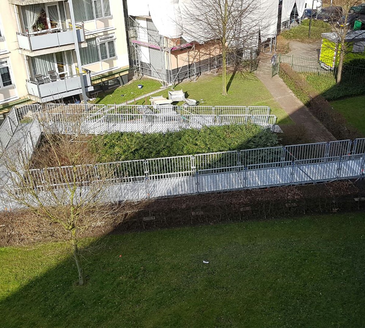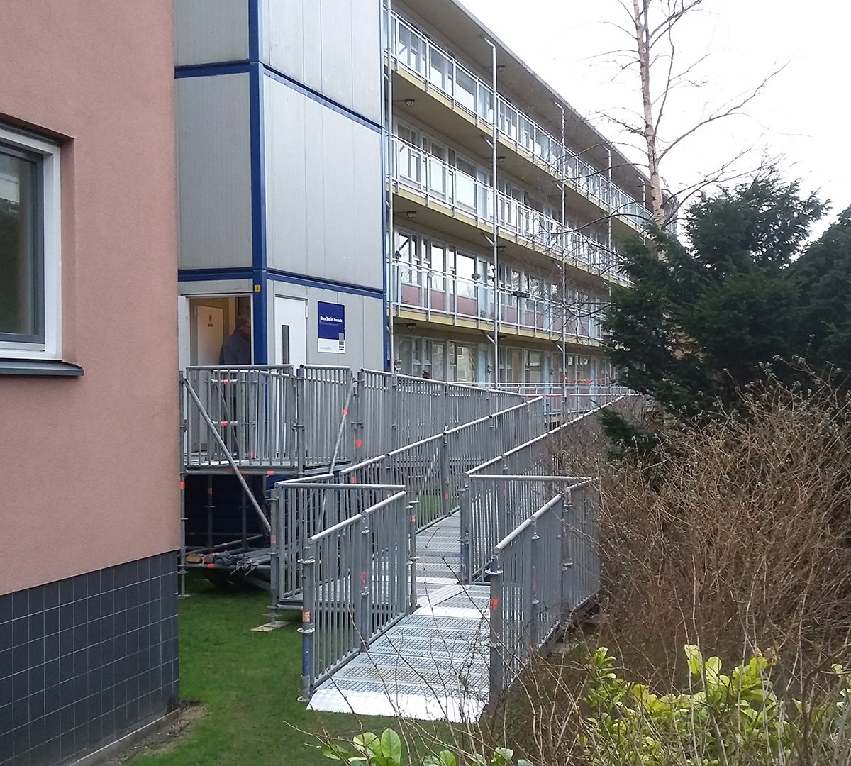 De begane grond van de gebouwen zit op 1,50 meter vanaf het straatwerk, de liften gaan vanaf deze vloer naar de overige verdiepingen. De begane grondvloer moest dus ook nog begaanbaar gemaakt worden voor de bewoners, hiervoor plaatste RECO tijdelijke hellingbanen bij de personenliften. Deze hellingbanen zijn extra ‘lui’ uitgevoerd zodat de liften voor iedereen goed bereikbaar zijn. Dankzij de liften en de hellingbanen blijft de overlast die de bewoners ondervinden aan de werkzaamheden minimaal.