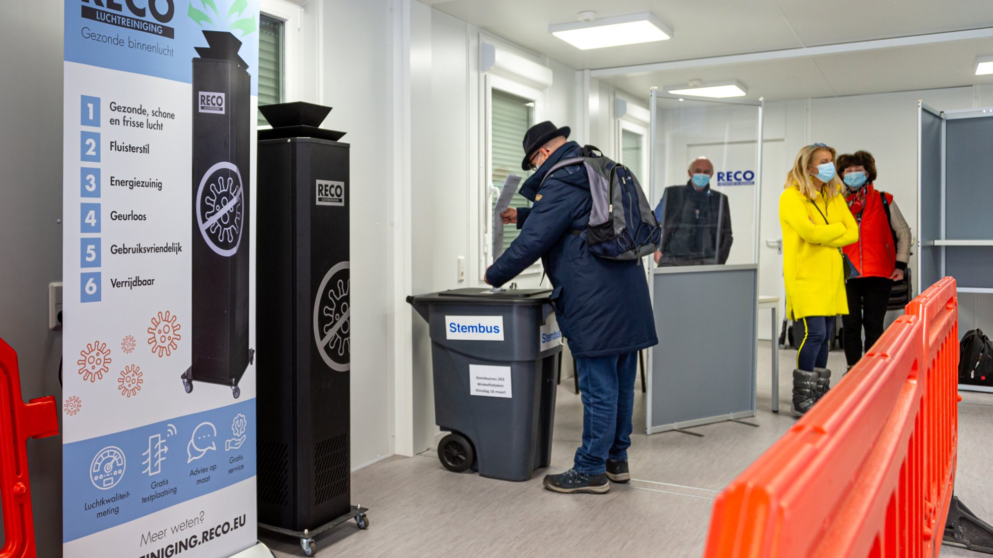 RECO heeft plasma luchtreinigers ingezet om de stemlokalen te voorzien van gezonde binnenlucht. De luchtreinigers houden de aerosolenconcentraties in de tijdelijke stemlokalen laag. Virussen hechten zich aan aerosolen in de lucht en blijven zo in de ruimte aanwezig ook nadat een besmet persoon de ruimte heeft verlaten. Door aerosolen uit de lucht te filteren, wordt verspreiding via de lucht tijdens het stemmen geminimaliseerd.