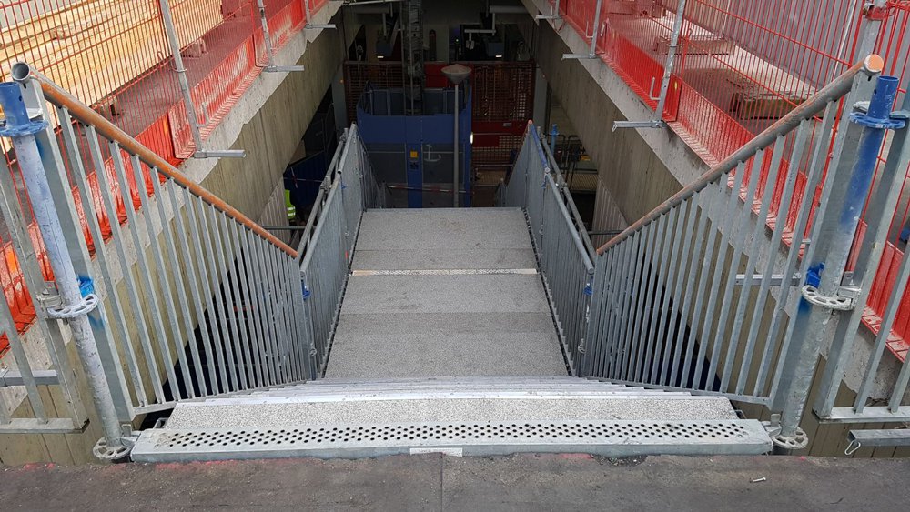 Om in het centrale deel van station Venserpolder meer licht te creëren, heeft de eindopdrachtgever (Gemeente Amsterdam) besloten om in de bestaande perronconstructie een vide uit te zagen. Om hiervoor het gezaagde betonpuin veilig op te vangen, heeft RECO hiervoor van Layher Allround een crashdeck geplaatst waar reizigers veilig onderdoor konden lopen. Na deze werkzaamheden kon RECO de vide gebruiken om wederom van Layher Allround een publieksvriendelijke trappentoren te plaatsen. Hiermee leidt RECO de reizigersstroom volledig om de centrale toegangshal, zodat Hegeman hier tijdens haar werkzaamheden geen hinder van ondervindt.