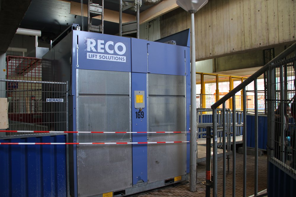RECO Lift Solutions heeft dit opgelost door de inzet van een tijdelijke GEDA P18S personenlift. Deze tijdelijke personenlift heeft als voordeel dat de basis module relatief licht van gewicht- en compact is, waardoor deze eenvoudig per heftruck naar moeilijk te bereiken opstellocaties getransporteerd kan worden.