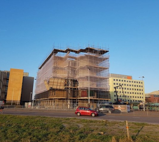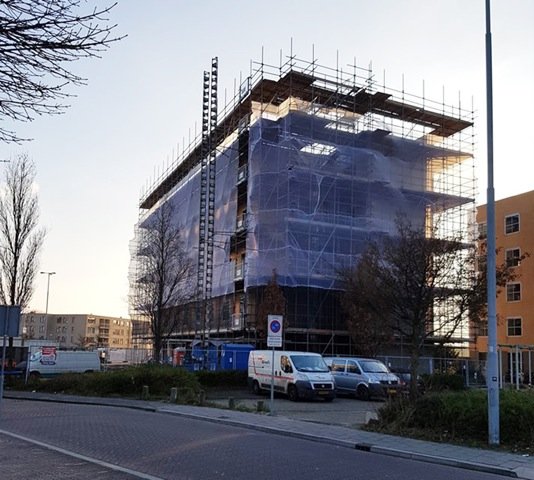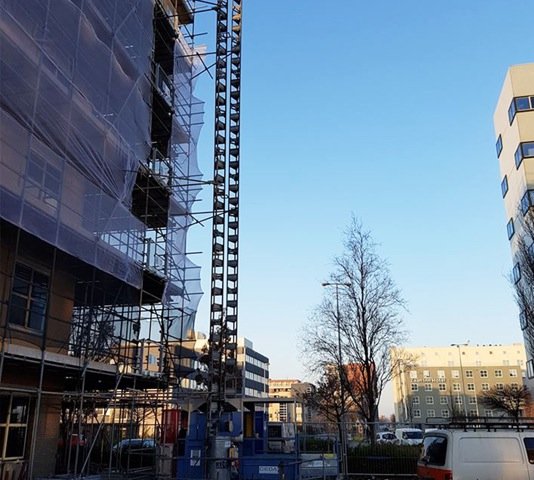 Tube-lock steigers en bouwplaatsinrichting voor kantoorpand in Zaandam