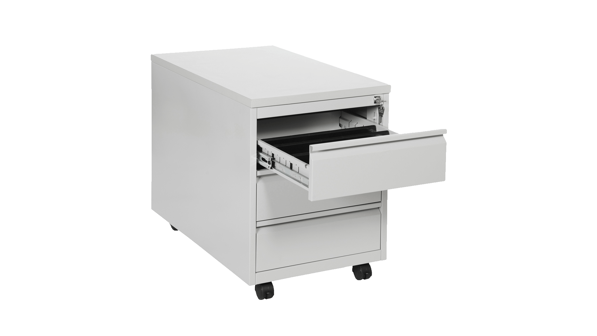 Tijdelijke kantoorruimte inrichten? Huur rolblokken bij RECO voor onder uw bureaus. Onze rolblokken zijn stevig en bevatten drie lades. De bovenste lade is te vergrendelen met de bijgeleverde sleutels.
