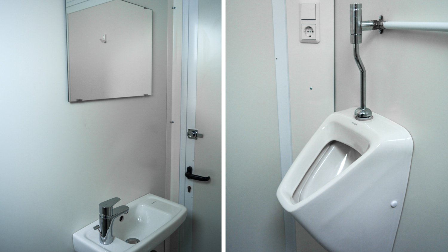 Kleine toiletunit met 2 toiletten en 1 urinoir huren