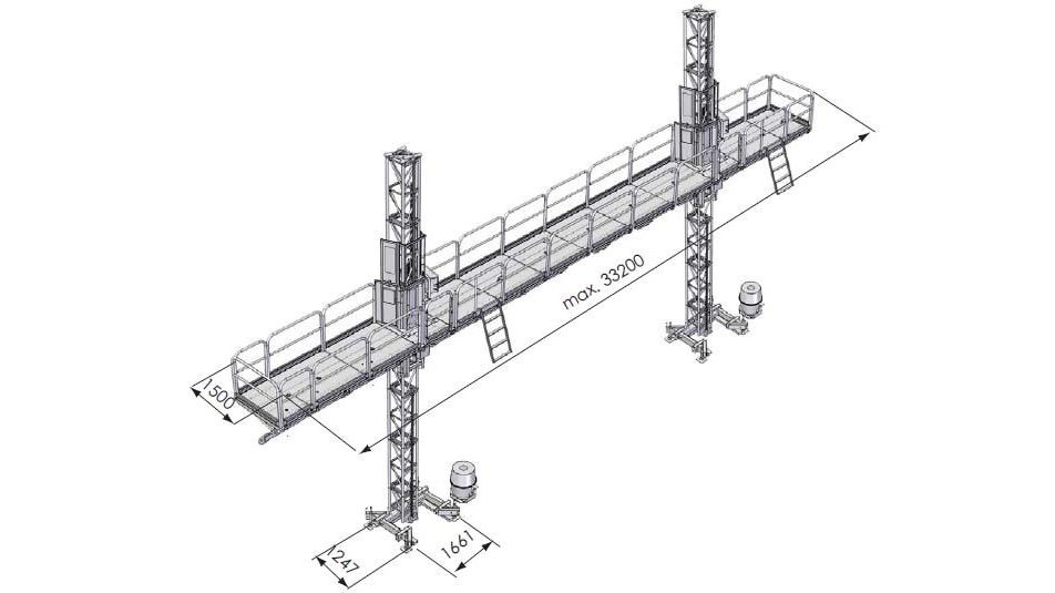 Voor een grotere opstelling is het mogelijk de hefsteiger te huren met een dubbele liftmast. Met twee liftmasten heeft u niet alleen meer oppervlakte, maar huurt u ook een extra hijsmachine voor meer hefvermogen. Dit is handig, want hoe langer het hefplatform, des te lager het hefvermogen. Dit heeft te maken met de stabiliteit van de liftopstelling. Wilt u weten welke opstelling het beste uitkomt voor uw project? Vraag onze adviseur om een berekening. We gaan graag met u in gesprek om een voordelige oplossing te vinden.