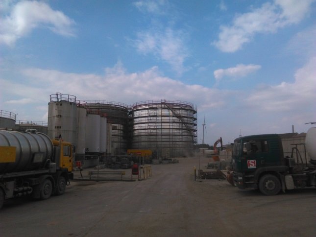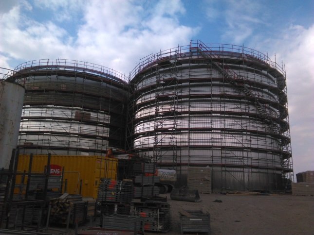 Het oprichten van een steiger rond een petrochemische tank is een specialistische klus. Over het algemeen heeft een dergelijk object namelijk geen of nauwelijks verankeringspunten en stelt ook de ronde vorm andere eisen aan het ontwerp.