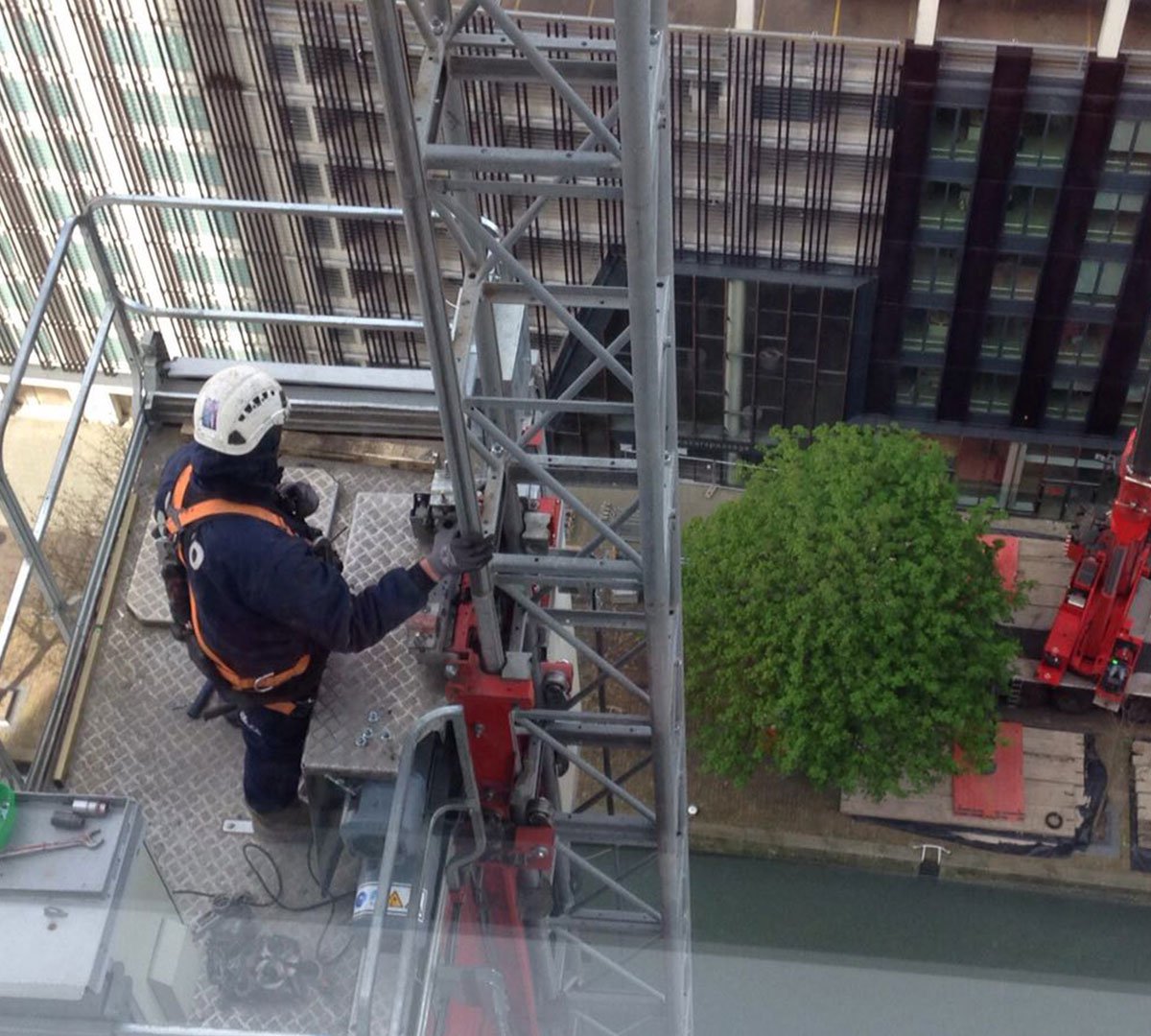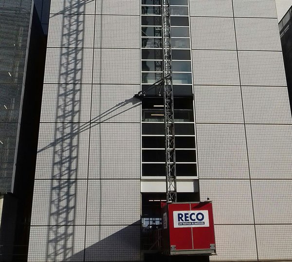 Om dit te kunnen realiseren heeft RECO drie stalen binten HE400B van 12 meter lang gemonteerd als fundatie voor de lift, deze binten zijn inpandig met zwaarlastondersteuning afgeklemd. De mast van de lift is van binnenuit de gevel naar buiten toe verankerd.