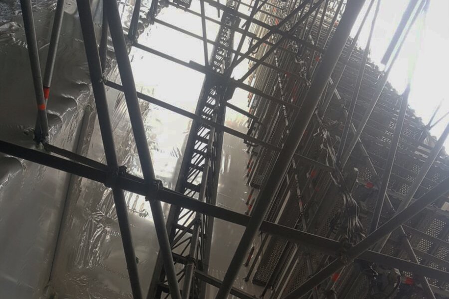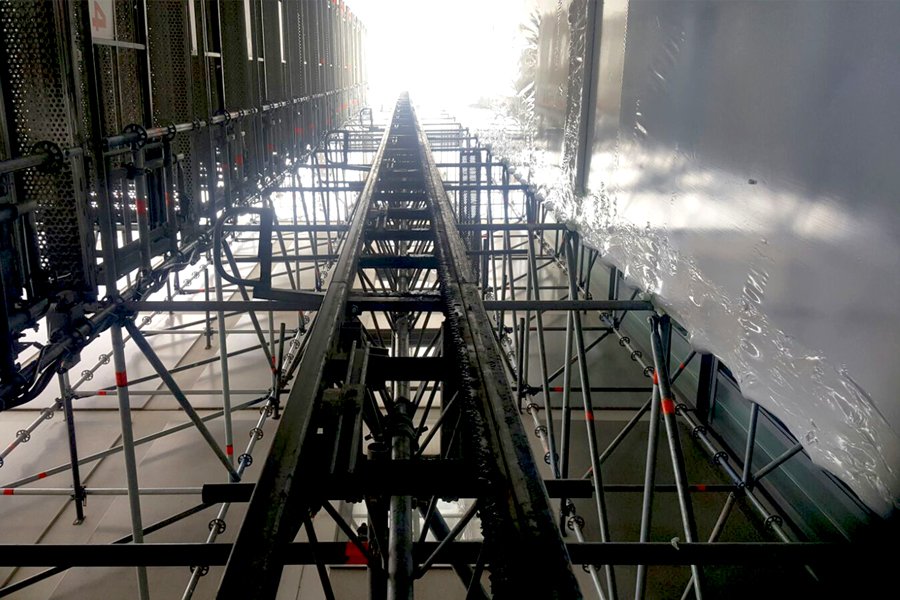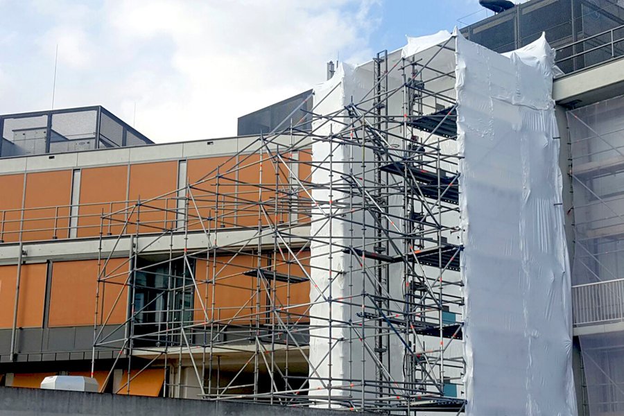 RECO werd gevraagd om voor de renovatie van het trappenhuis van gebouw A een Layher Allround-systeemsteiger en een personen-goederenlift te plaatsen. Zo blijven de verschillende verdiepingen gedurende de diverse renovatiewerkzaamheden altijd toegankelijk voor het bouwpersoneel. De planning is dat het trappenhuis eind oktober helemaal klaar is voor gebruik. Het gehele renovatie / nieuwbouwproject van het Ikazia ziekenhuis zal in totaal circa 39 maanden duren.